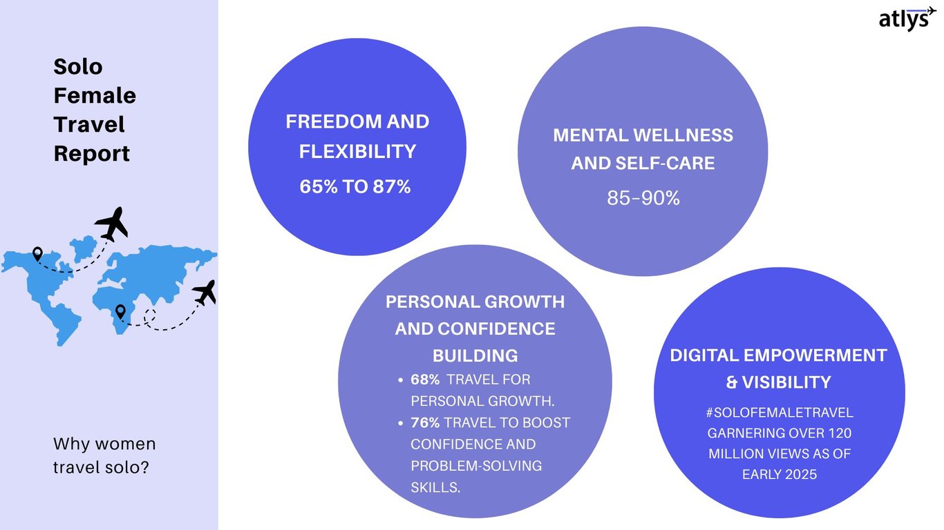 87% to 90% of solo female travellers now describe their journeys as empowering or self-care oriented