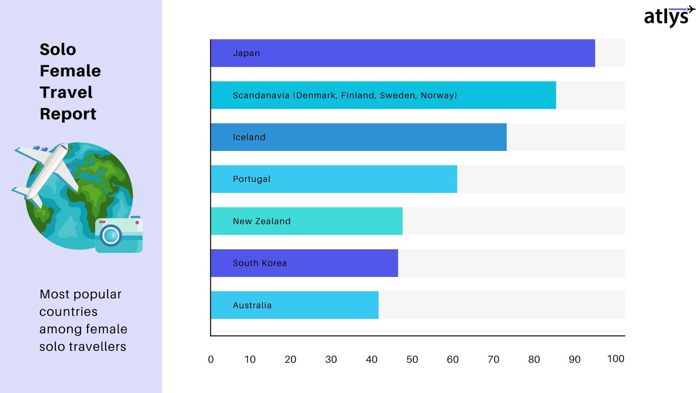 According to the 2024 Solo Female Travel Trends Report (by Solo Female Traveller Network):