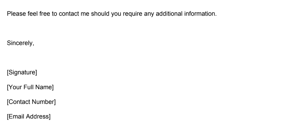 End the letter in a polite and professional tone.