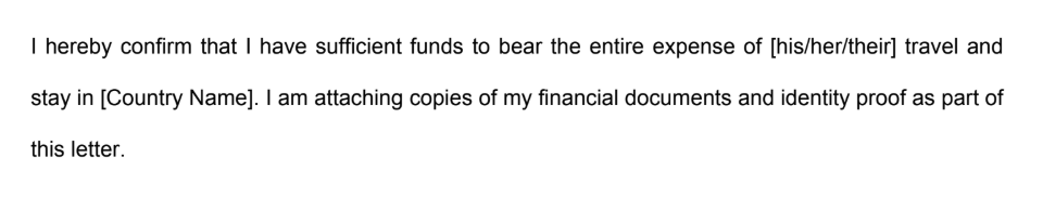This is one of the most important parts of the letter. The sponsor must clearly state that they will take full (or partial) financial responsibility for the applicant during their stay.