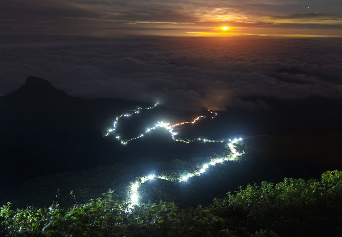 Perched at a sky-high elevation of 2,243 meters (7,359 feet), Adam’s Peak (or Sri Pada, depending on who you ask) is the type of place that makes you sweat buckets and wonder why you ever thought a midnight hike was a good idea—until you get to the top.