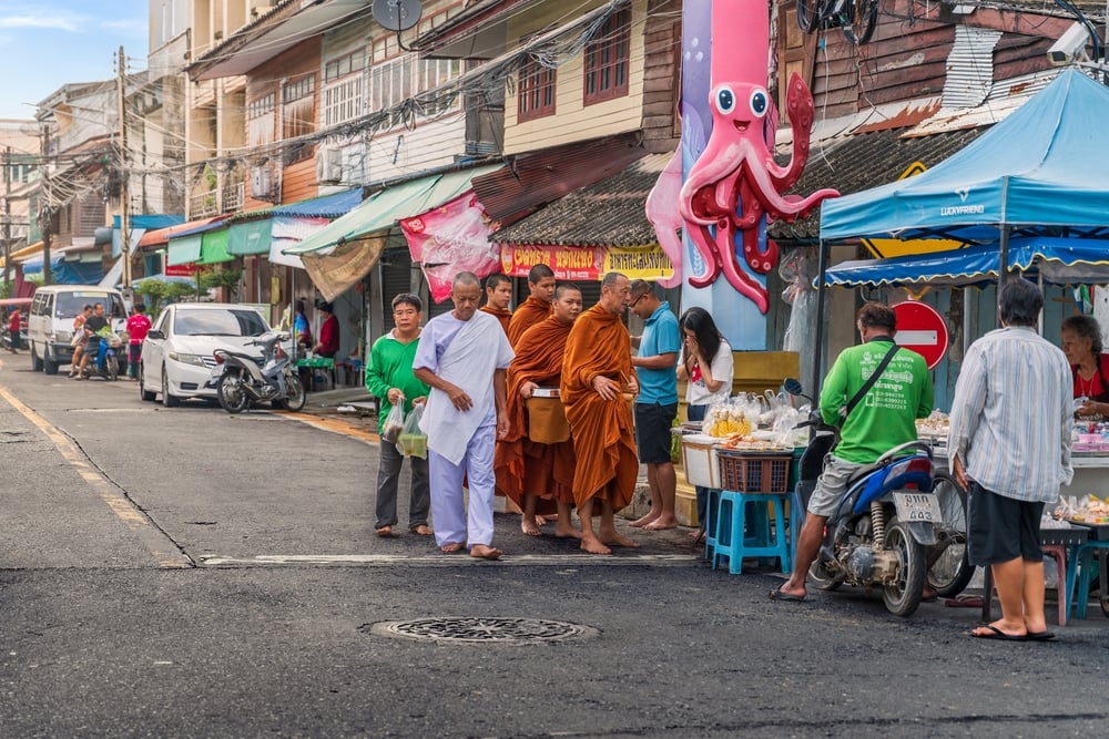Songthaews (shared red trucks) are the local way to go in towns like Chiang Mai, Phuket, or Krabi. Fares are low (10–40 THB), and you pay when you get off.