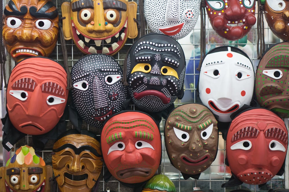 Traditional masks (Tal / Hahoetal): These wooden or papier-mâché masks used in folk drama and ceremonies are bold décor items that tell a story of Korean culture and performance.