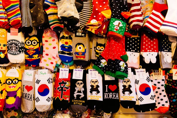 Myeongdong Street Market, Hongdae Shopping Streets, Dongdaemun Market, and underground shopping centres near subway stations.Cost of Socks: