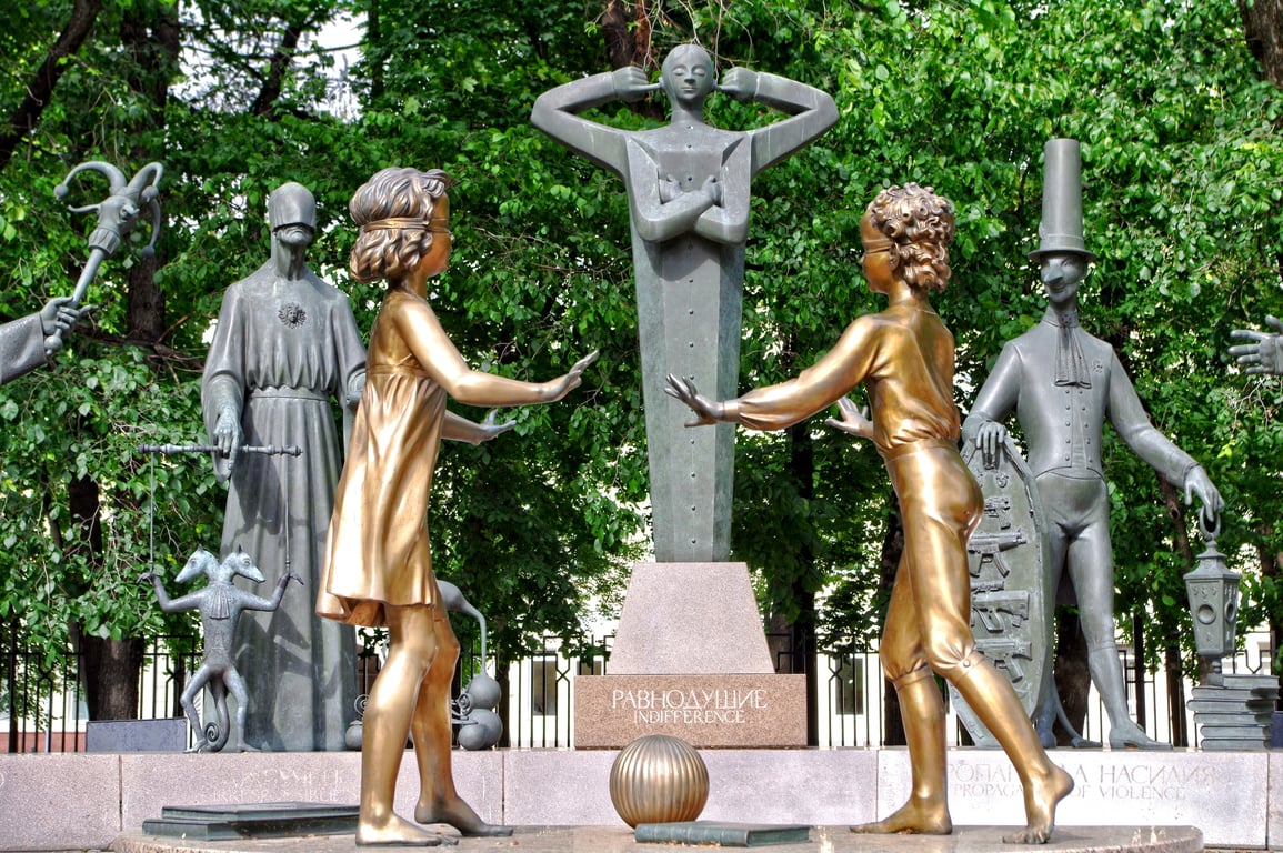 Located in Bolotnaya Square, the sculpture “Children Are the Victims of Adult Vices” is one of Moscow’s most striking and thought-provoking art installations to visit. Created by artist Mikhail Shemyakin in 2001, it is a powerful commentary on societal issues and the impact of adult behaviour on younger generations.