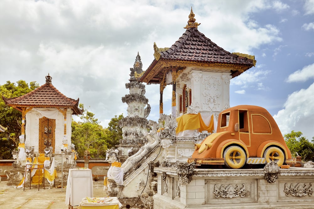 It’s a traditional Balinese Hindu temple that unexpectedly features automotive-shaped shrines. You won’t find this anywhere else in the world, making it a true hidden gem on the island.