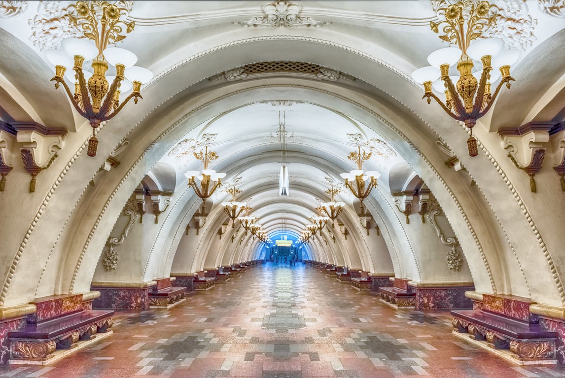 Mayakovskaya Station: Widely considered the crown jewel of the metro, this station features sleek Art Deco designs and a dreamy ceiling filled with mosaics of Soviet utopias.