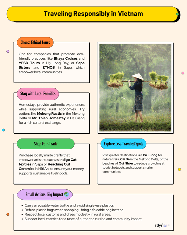 By familiarising yourself with the above-mentioned tips and information, from visa requirements and the best time to visit to understanding responsible tourism and local etiquette, you will not only set yourself up for a journey that’s smoother but also more meaningful. Remember, Vietnam’s charm lies not just in its sights but in the experiences and connections you create along the way.
