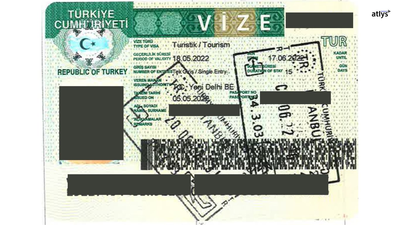The Turkey Sticker Visa is stamped directly inside your passport. It usually contains: