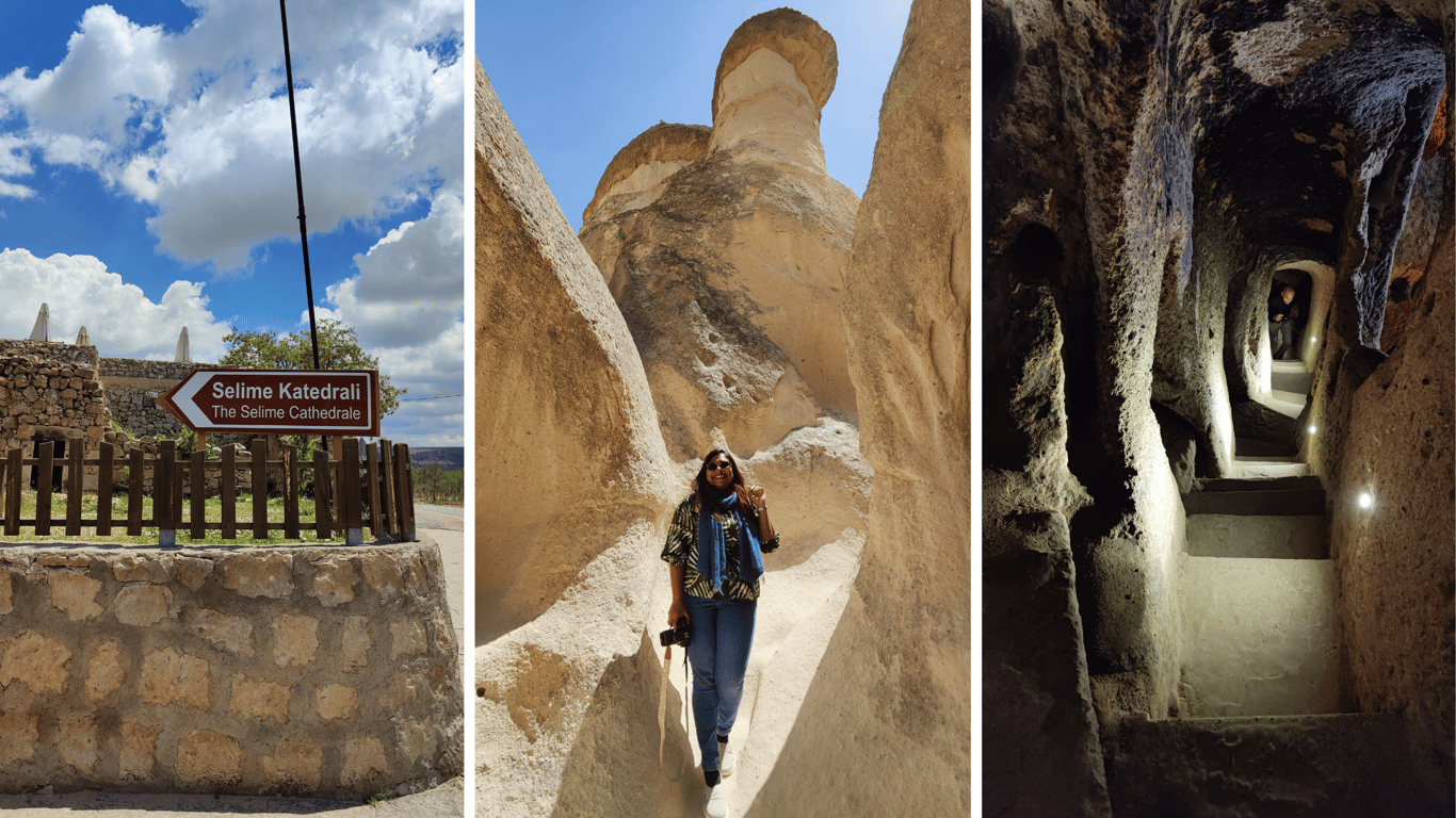 The Green Tour, on the other hand, takes you deeper, both geographically and emotionally. It covers a wider stretch of southern Cappadocia, including the haunting Derinkuyu Underground City, where entire communities once lived hidden beneath the earth. From there, it winds through the lush Ihlara Valley, a deep canyon with a river trail flanked by cave churches, and ends with the dramatic Selime Monastery.