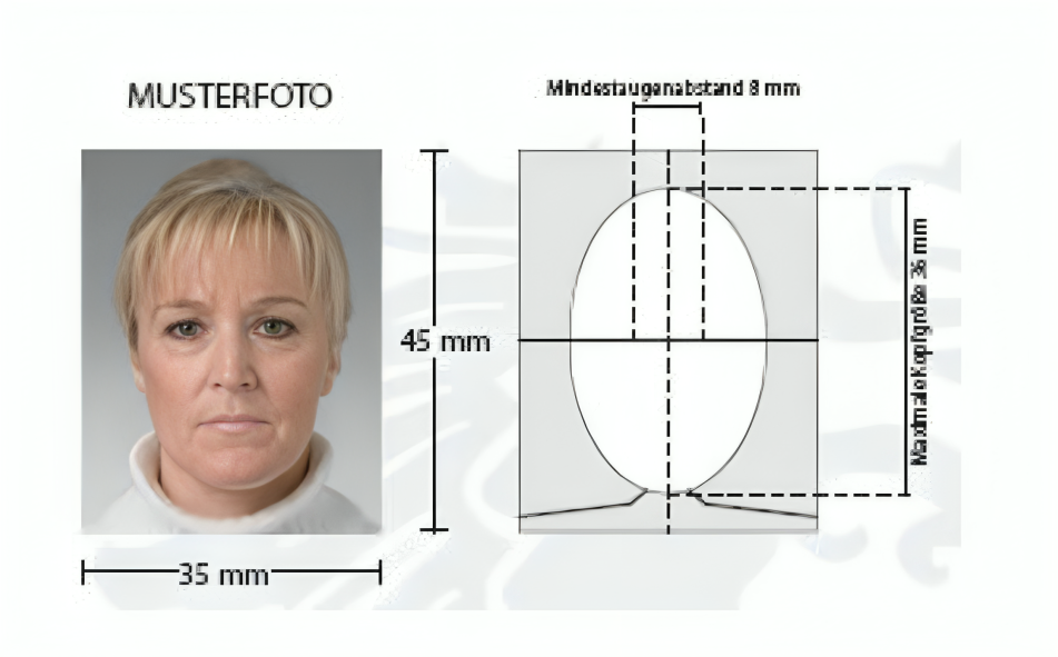 The Austria visa photo size must measure 35mm in width and 45mm in height (1.38 x 1.77 inches, 3.5 cm x 4.5 cm in cms). The width of the face shall be between 16 mm and 20 mm from ear to ear.