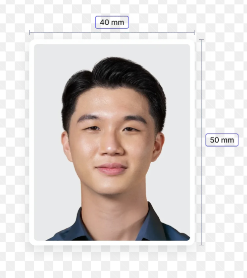 Height and Size: 40 × 50 mm (4 × 5 cm); the head should measure between 32 and 36 mm from chin to crown, occupying about 70 to 80 percent of the photo