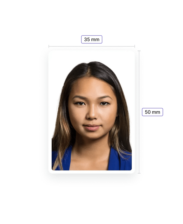 The photo must be 35mm wide and 50mm high, with your face height between 30mm and 35mm.