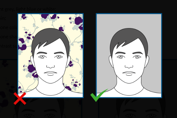 The photo background must be plain and light so that facial features are distinguishable and contrast against the background.