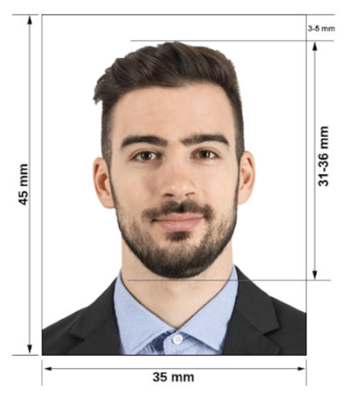 The photo should be 35mm x 45mm, with your face covering 70–80% of the image to ensure biometric compatibility.