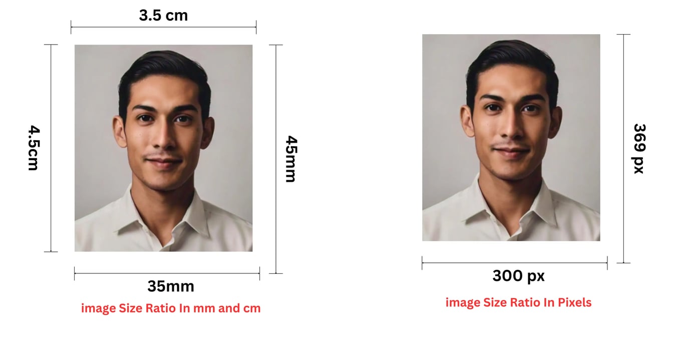 The UAE visa photo must measure 35mm in width and 45mm in height. Additionally, the face, from the bottom of the chin to the top of the crown, should be between 32mm and 36mm to ensure accurate facial recognition and verification.